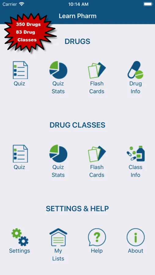 Learn Pharm includes the following features to help you learn drugs and drug classes: