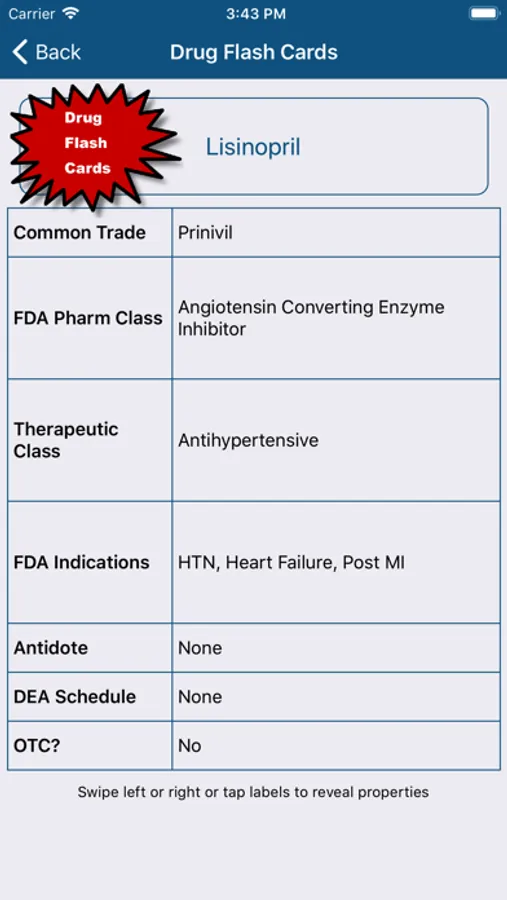- Ability to create a custom list of drugs for quizzes and flash cards