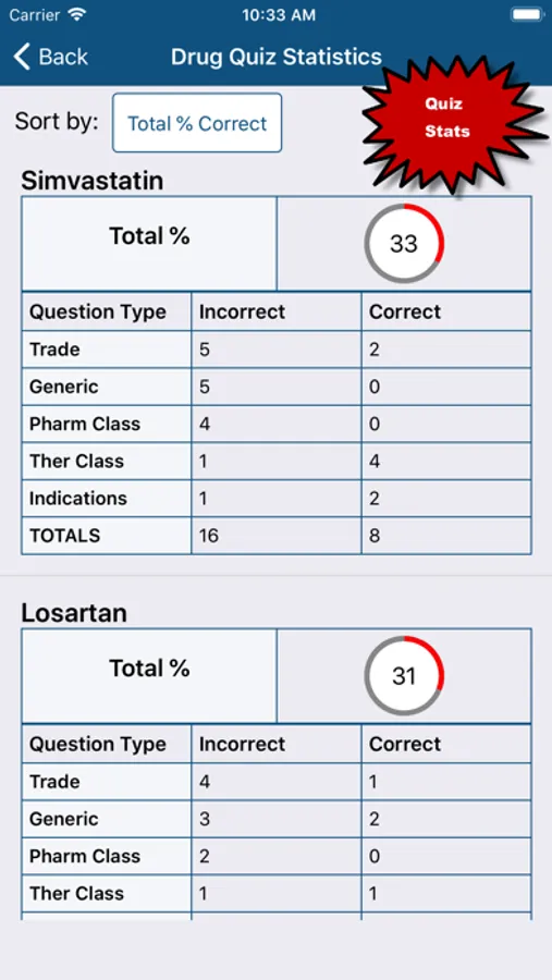 - Highly customizable drug and drug class quizzes