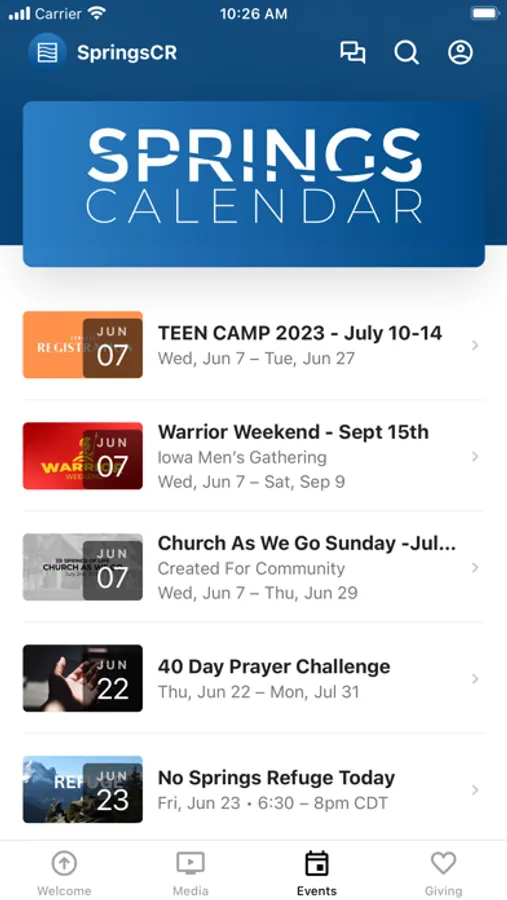 The Springs CR app has lots of live and archived media, messages and worship services. You can also easily find opportunities to connect with the Springs Community, Interact with others during our streaming worship services and so much more!