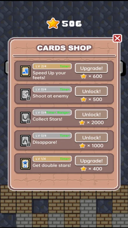 An acting game with unlimited levels! Tap left or right of the screen to move the character, slide the bricks to create different routes! Collect the stars to upgrade your super powers!