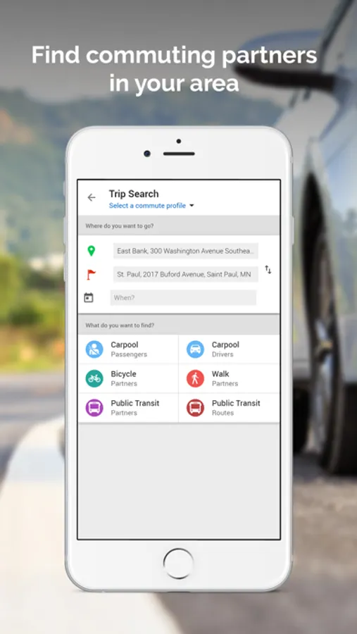 The GopherRideshare platform is a trip planning and commuter-matching service that provides a one-stop-shop trip planning tool for improving your commute to UMN, whether you carpool, vanpool, walk, bike, or take transit. Through GopherRideshare’s easy-to-use interface and mobile app, you can search for all available transportation options for your commute by simply entering an origin and destination.