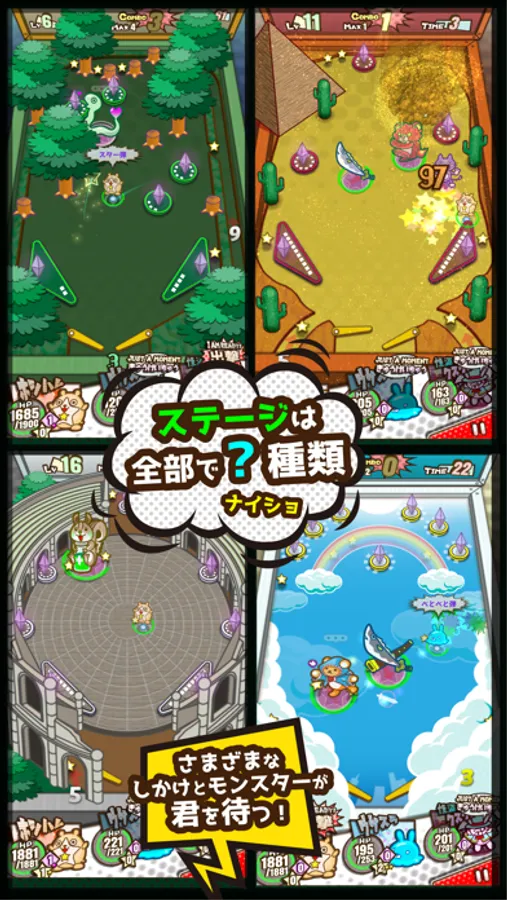 - Various pinball stages like RPG. ex) Forest, Desert, Arena, Sky….