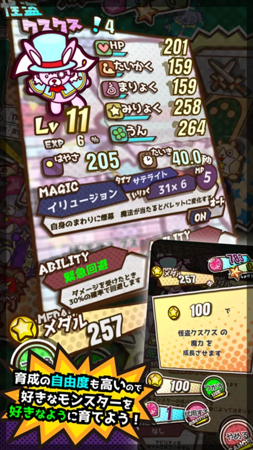 - You can collect more than 100 monsters, and grow them up as you like.