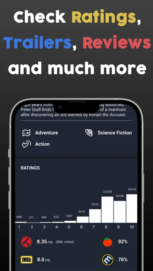 • Read user and critic reviews on IMDB, Rotten Tomatoes, LetterBoxd and Wikipedia with quick shortcuts