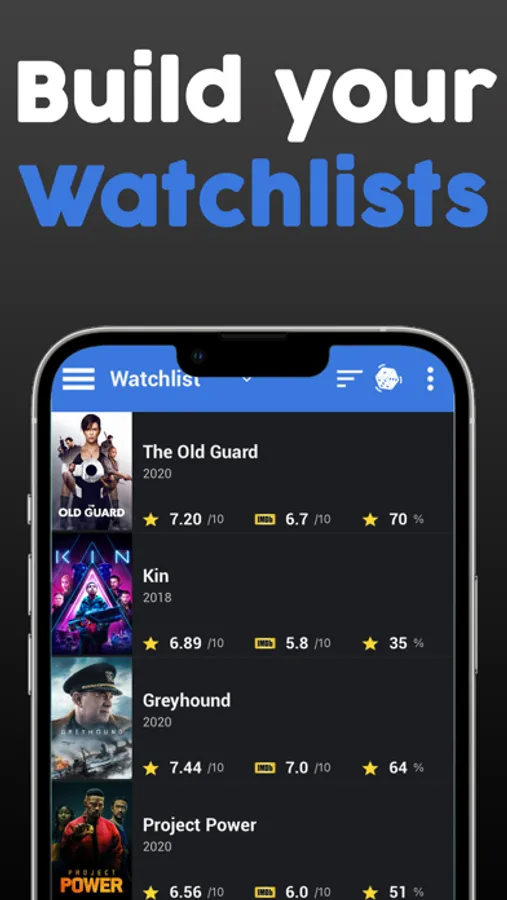 • Add movies and shows to your watchlist and manage them using a wide range of sorting options