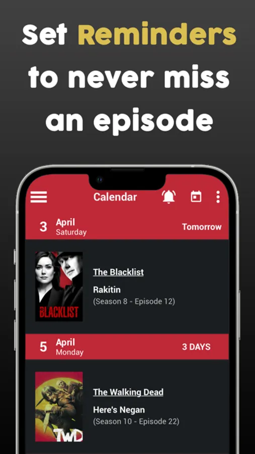 • Receive NOTIFICATIONS and never miss a TV Show episode or movie release!