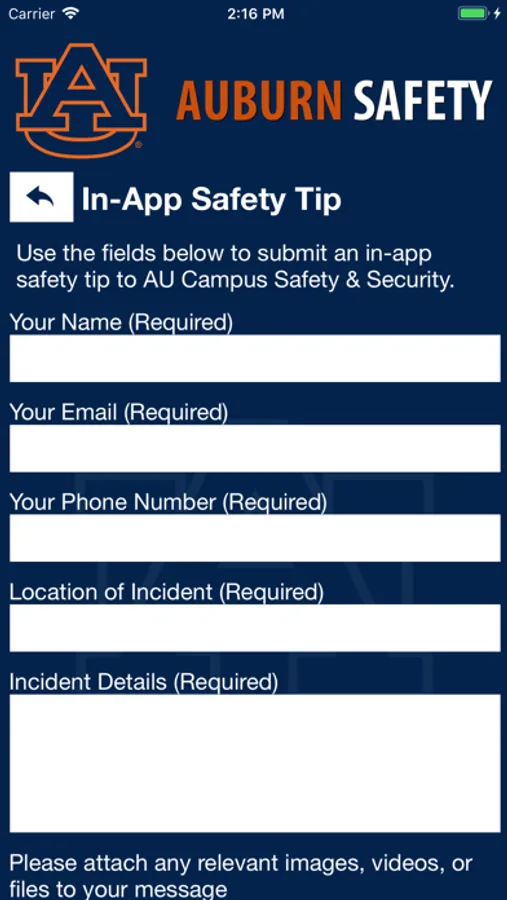 - Tip Reporting: Multiple ways to report a safety/security concern directly to Auburn University security.