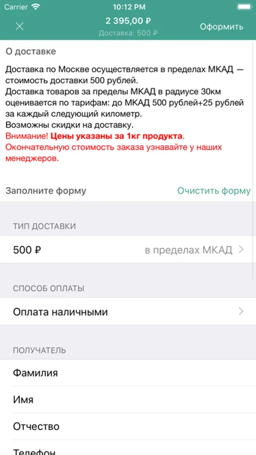 Магазин и доставка товаров работают круглосуточно. Оплата товаров покупателем происходит только после визуального осмотра продуктов во время доставки. В случае возврата части продуктов или всего заказа, магазин берет на себя все связанные риски по доставке.