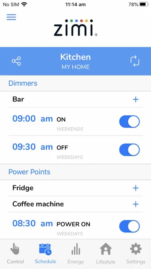 Zimi is the smart app to control all your Powermesh, Senoa and Zimi devices.