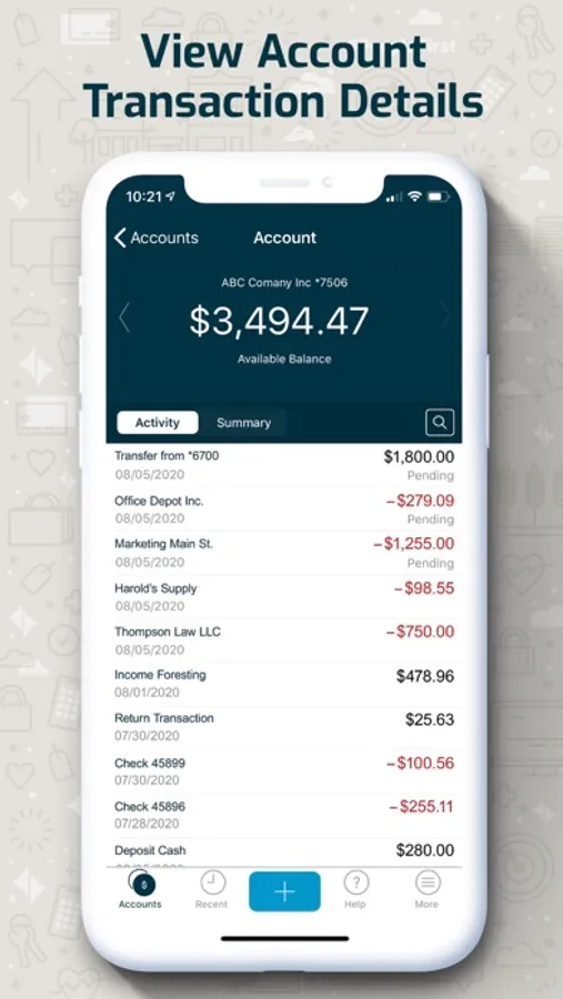 • Check your latest account balance and search recent transactions by date, amount or check number