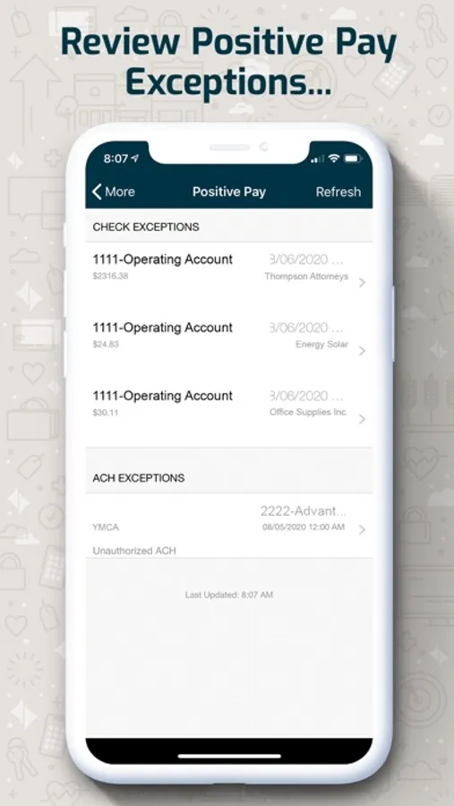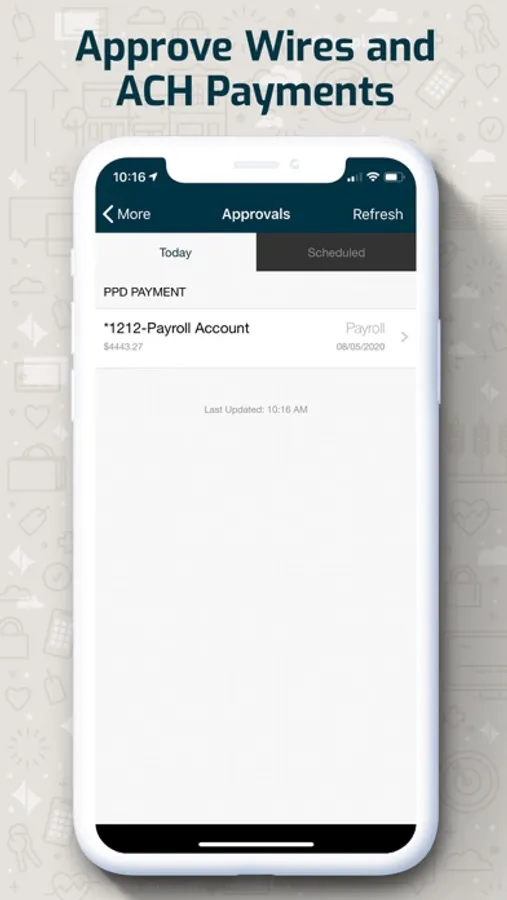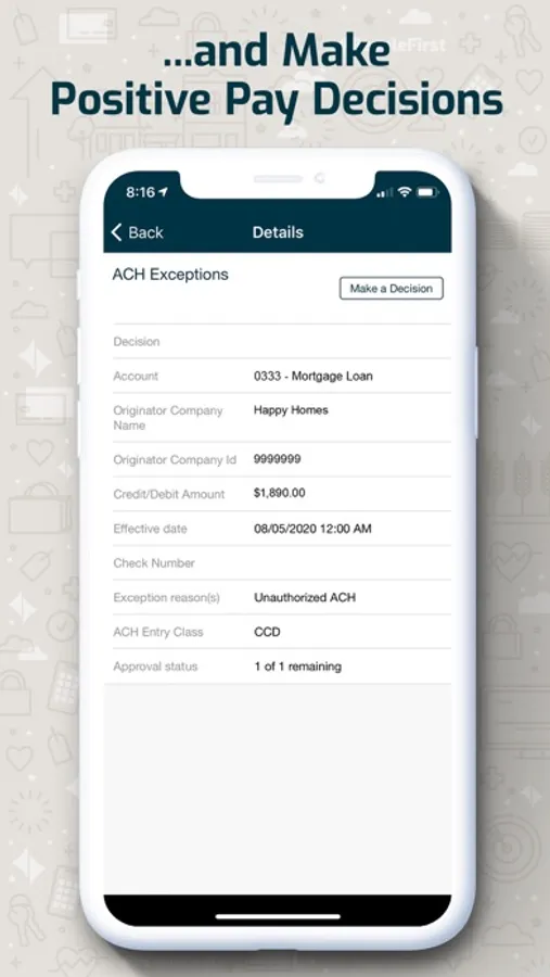 • Approve Wire, ACH payments, and Positive Pay exceptions