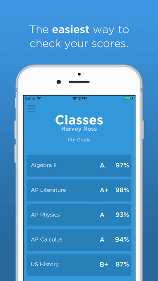 Welcome to Grades, the simplest way to check your school assignment scores. We support over 250 school districts that use the Aeries Student Information System. With a multitude of features to make it easy to analyze your scores such as a built in grade calculator, Grades is sure to keep you on top of your schoolwork.
