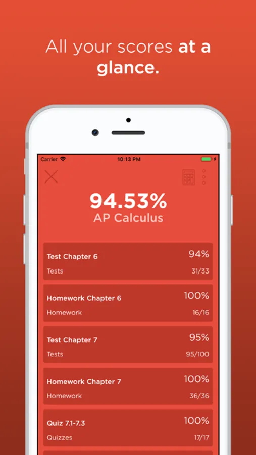 The grade calculator and averages features work completely offline, so you can check and analyze your scores on the go.
