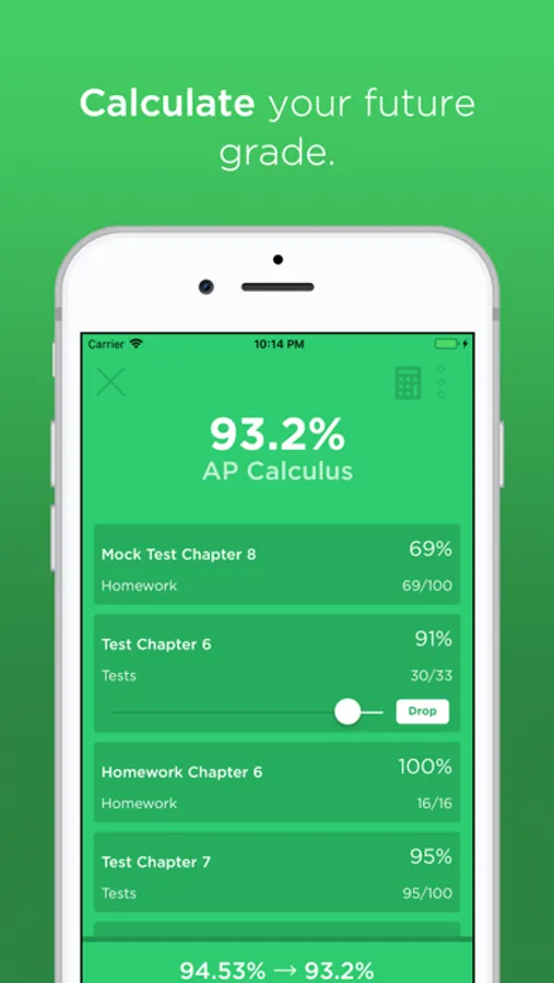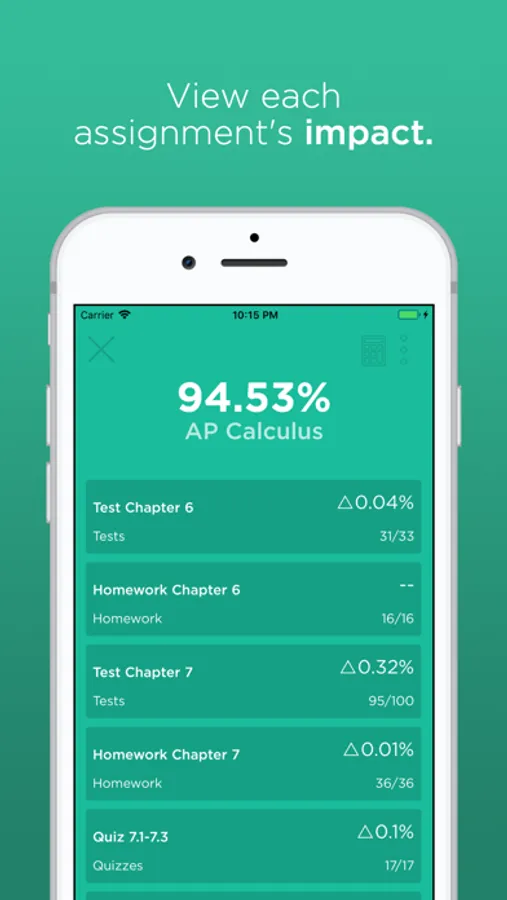 Add in mock assignments to see what affect a certain score will have on your grade. Also, change the score of assignments to see how that will change your grade.