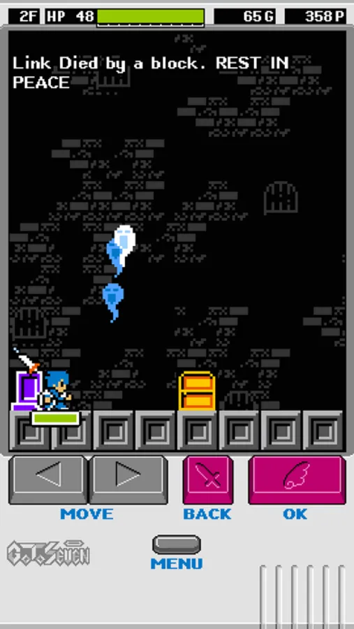 Game over if it gets crushed by blocks or treasure boxes. Over 80% game over floor on the first floor.