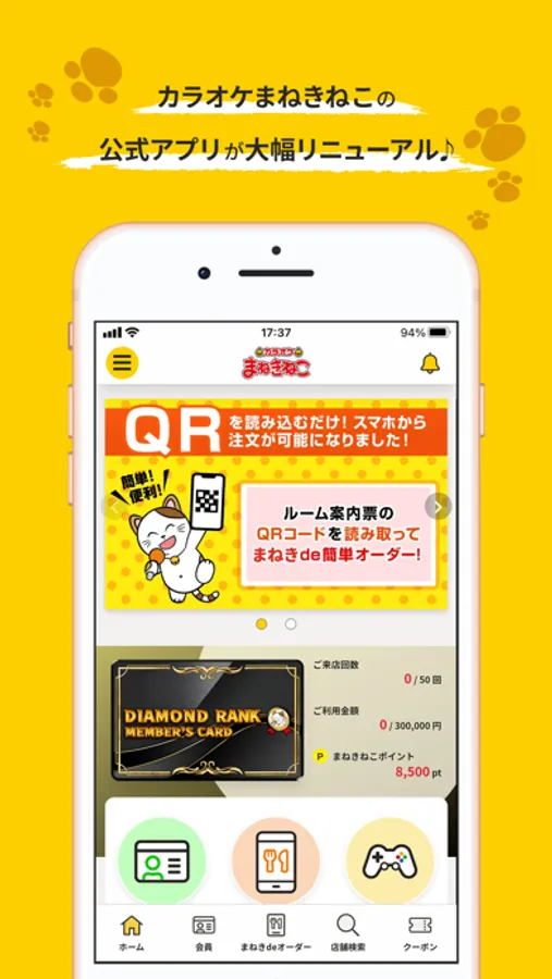 まねきねこ会員様が、カラオケまねきねこの最新情報やクーポンの獲得、お支払いやゲームプレイでポイントを獲得したり、お店を探すことができたりします。