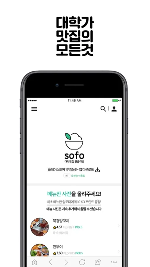 이제 sofo를 살펴보세요. 맛집 정보와 소개, 대학생들이 직접 작성하는 생생한 리뷰가 있습니다.