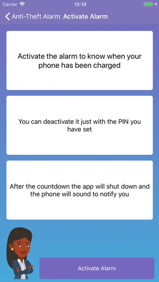- Protect your phone with the PIN code you choose. The best mobile security alarm.