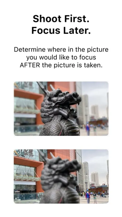 This depth information enables the user to "shoot first, focus afterwards" as with a light field camera, and achieve beautiful out-of-focus blur (aka bokeh) as if the picture was taken with a large aperture lens.