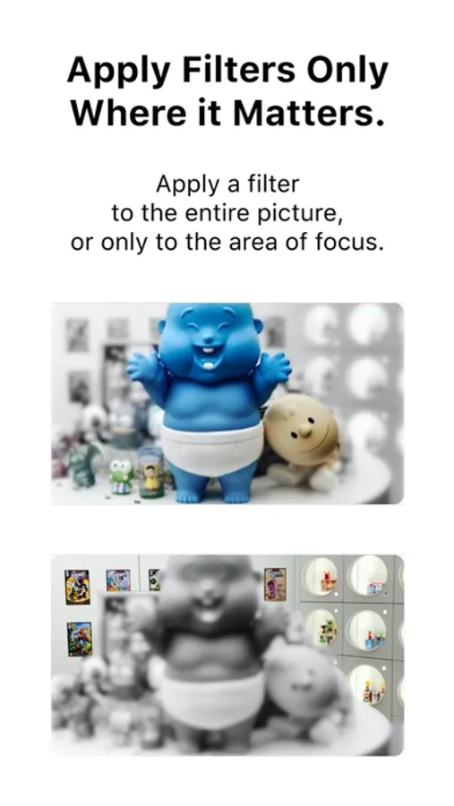 --A variety of classic filters that add an extra artistic touch to your picture. The filters can be applied to the entire image, or just the in-focus area to make the subject really stand out.