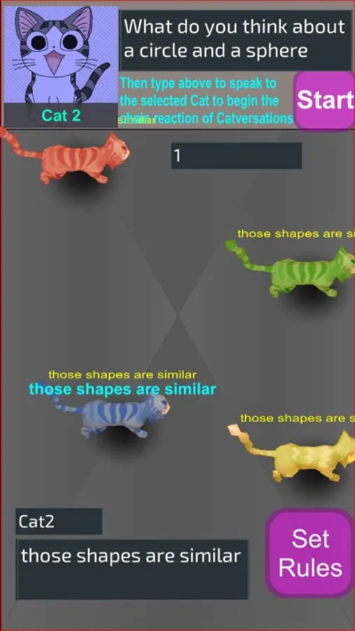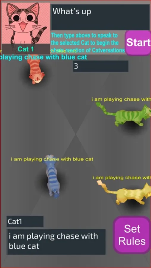 Have your Talking Cats interact with each other based on the A.I. rules you, the user, sets.
