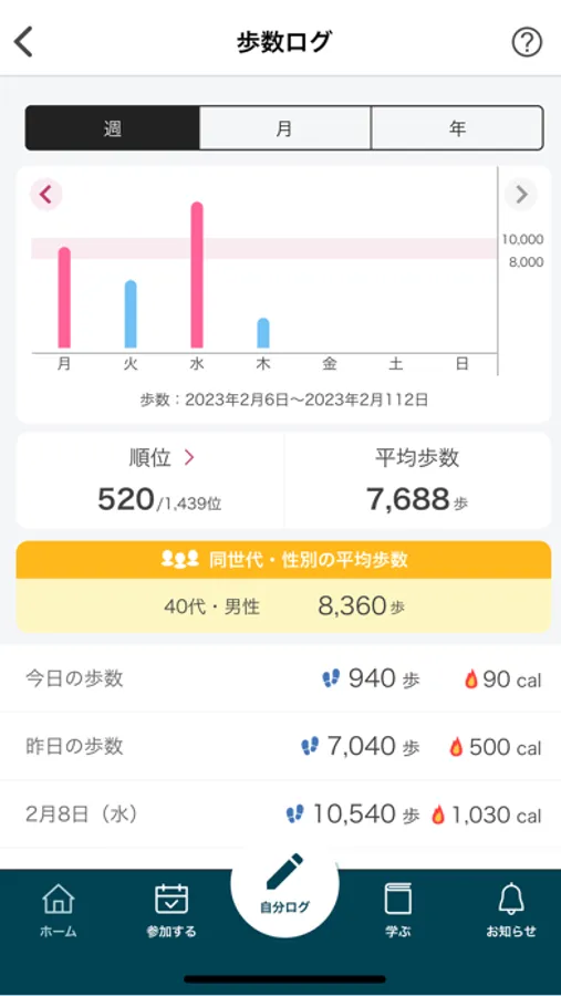 ※歩数データを取得するには、『ヘルスケア』『Fitbit』のヘルスケアアプリと連携が必要となります。