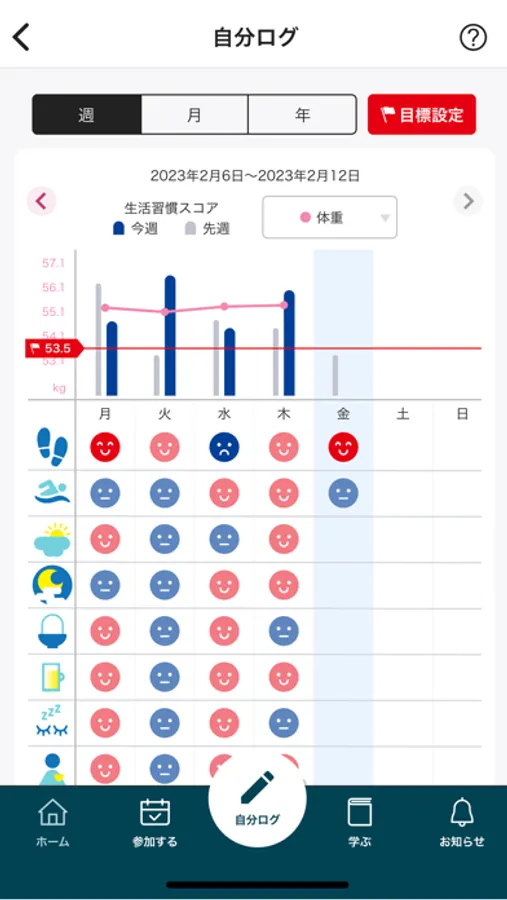 入力した項目は、日々の歩数と共にグラフ化され推移を確認することができます。