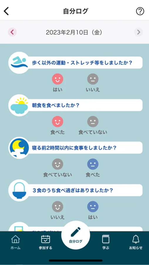 毎日、食事・睡眠・気分に関する質問に回答し体重を入力してください。