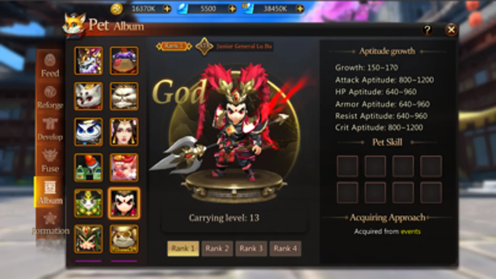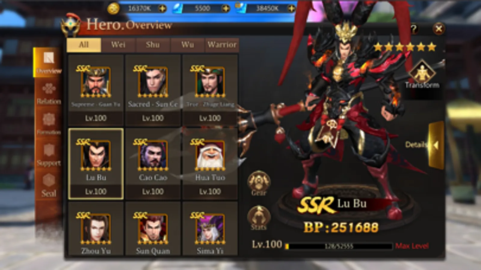Collect famous heroic characters to fight for your glory, like Cao Cao, Guan Yu, Zhang Fei, Lu Bu and many more.