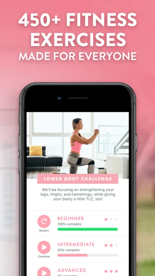 - Over 450+ workouts custom for your fitness level: Beginner, Intermediate or Advanced