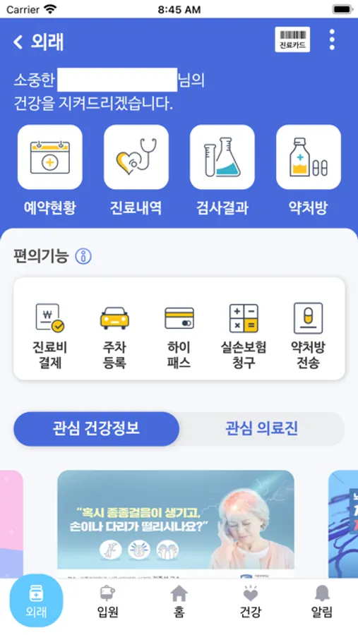 병원에서 진료 본 내역을 간편하게 확인할 수 있습니다.