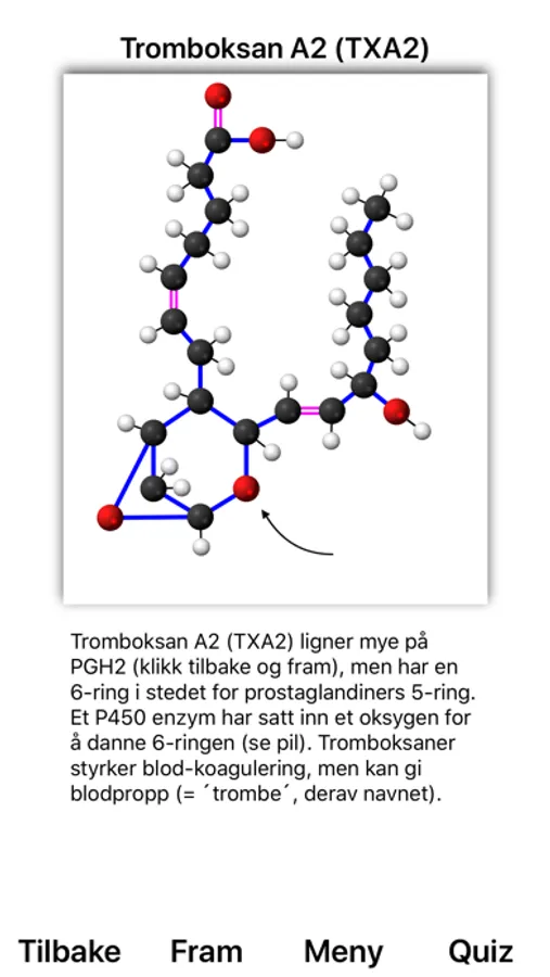 Hjelpefunksjoner med over 50 tekster og 45 illustrasjoner hjelper deg med molekyl-strukturer, molekylnavn og hvordan fettsyrer forandres, bygger fettstoff og bygger opp signalstoff som prostaglandiner, tromboksaner og leukotriener.