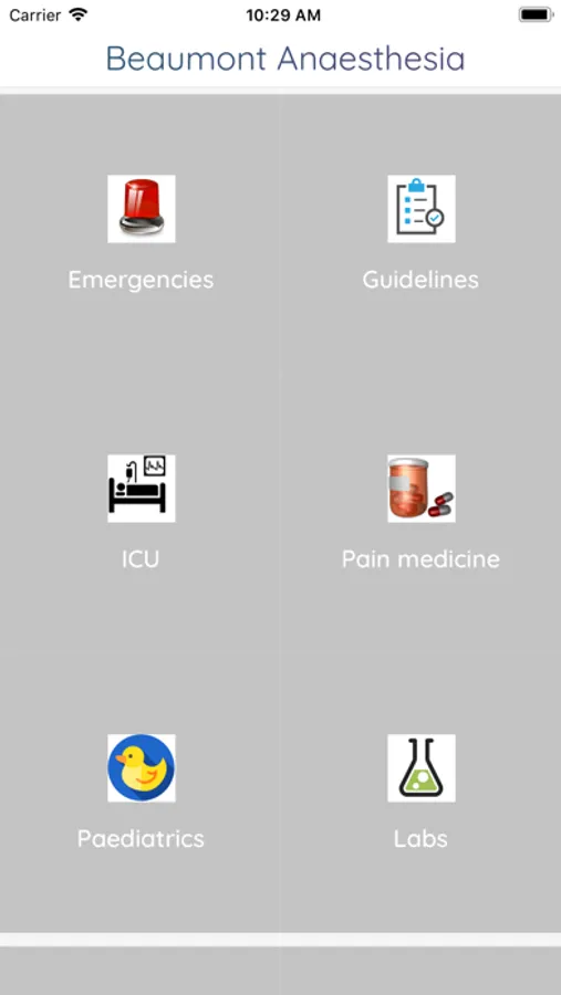 App for use by anaesthesia residents who rotate through the Department of Anaesthesia, Intensive Care and Pain Medicine in Beaumont Hospital, Dublin. The app contains various guidelines and protocols for our department. It also contains useful information for new residents e.g. where to locate different emergency equipment in the event of a particular emergency.