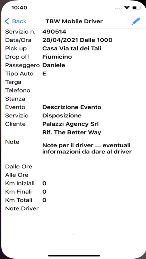 In breve sul lato "server" è stato sviluppato un cruscotto da in cui vengono gestiti i servizi, dall'offerta fino alla fatturazione, con possibilità di assegnazione del servizio al driver, che riceve automaticamente una notifica push che l'avverte che ha una modifica sui servizi a lui assegnati.