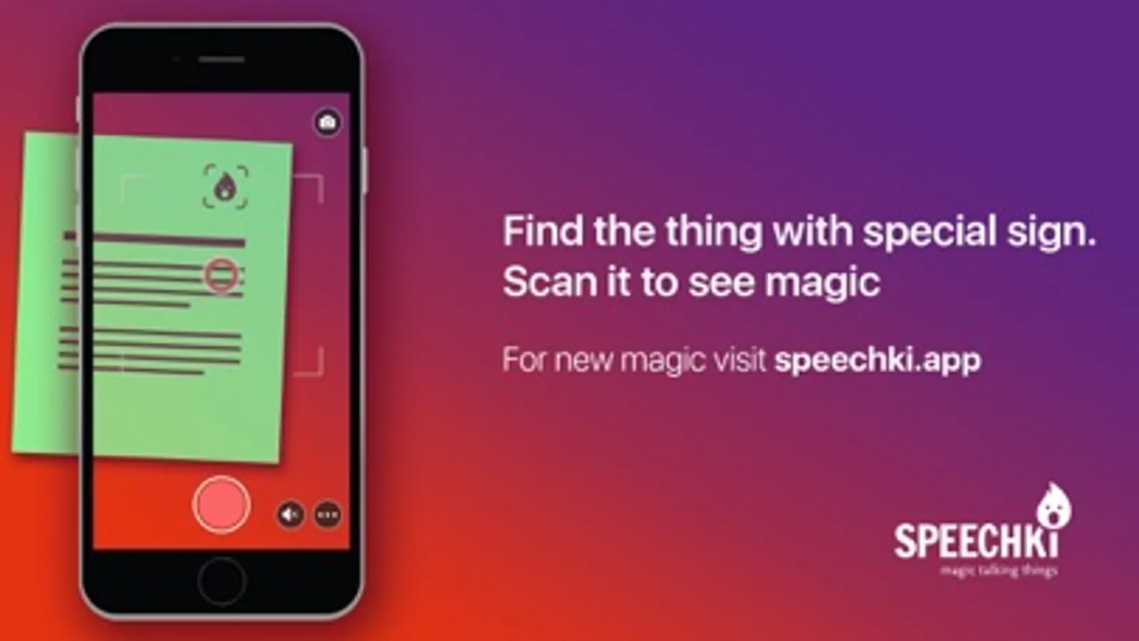 Seek for SPEECHki special sticker to see magic from surrounding things.