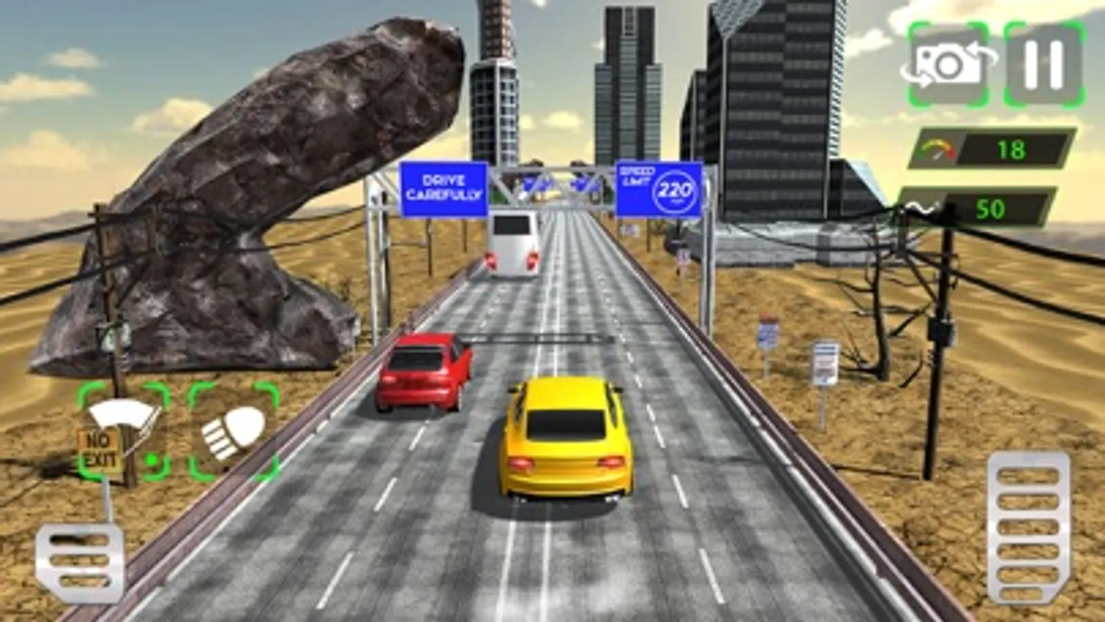 Press the acceleration button to accelerate your car on the busy highway of the city of new car games. There are multiple modes in this racing game. In one-way mode you have to just overtake the other cars, its the easiest mode because you don't have to worry about other cars coming from opposite sides, but you have to save yourself from hitting other cars, if you hit any car moving forward then you may lose the game that is different from new driving games. Be the legend hero of highway driving games.