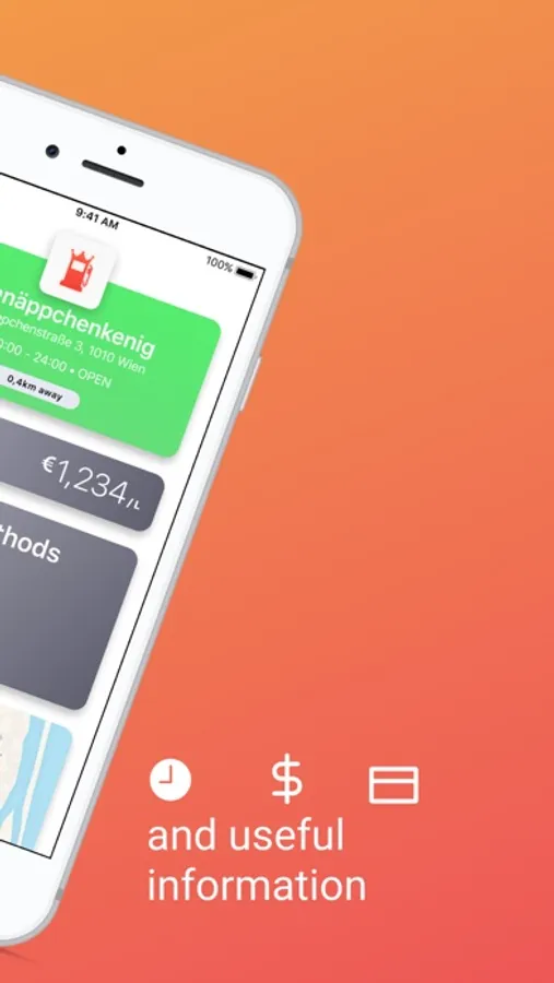 Spritkenig not only looks good, but also helps you save money. Using your location, the cheapest gas stations are determined and graphically presented to you. In addition to the price, you will also see additional information about the respective location, such as whether it is a self-service filling station or how long it is open.