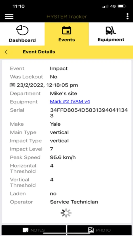 The Hyster Tracker mobile app takes site-based solutions to the next level. This app works as a companion to the existing portal with a simpler, easy to use interface for any supervisor, safety officer or administrator no matter their location. The first of its kind in the material handling industry, data and critical information will report events to a user no matter their location on the warehouse floor. Upload event notes, take pictures of damage, and review incorrect pre-start questions in real time to ensure maximum productivity. Smart dashboards make large data sets and information more manageable through your smartphone. Fleet management and operator efficiency is now at the power of your fingertips.