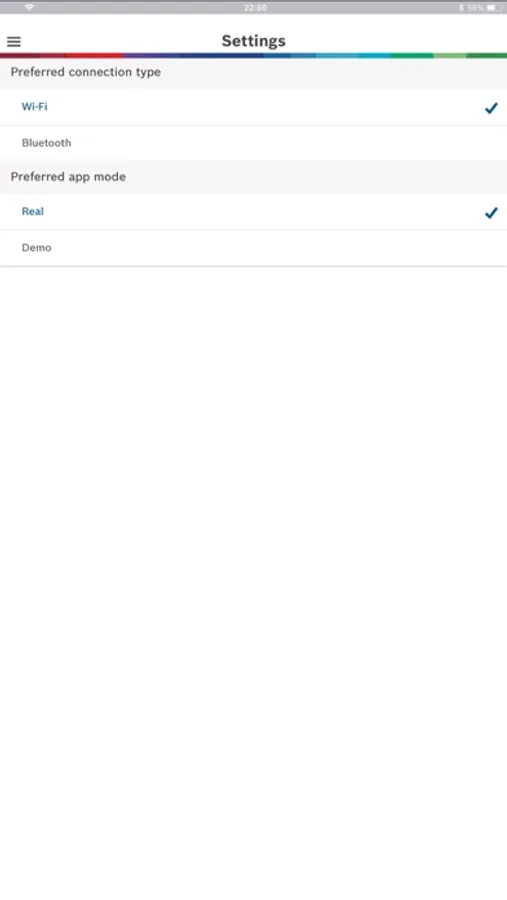 - Select the preferred connection type in application settings (default is Wi-Fi)