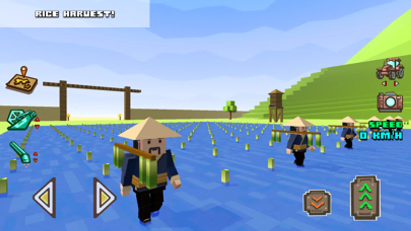 Even more fun waits for you in Farm simulator mode. Find huge map, cities, fields and cute animals! Become real blocky farmer and grow your farm! ... or just relax and start village exploration!