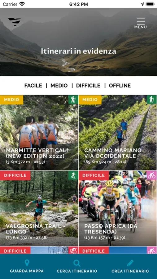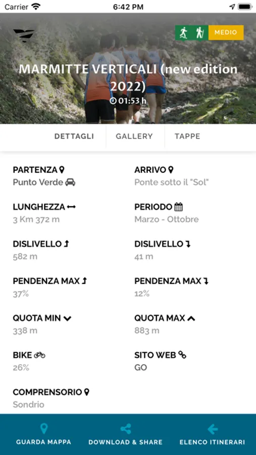 • OLTRE 300 PERCORSI DISPONIBILI completi di descrizioni dettagliate, foto, dati tecnici e mappe