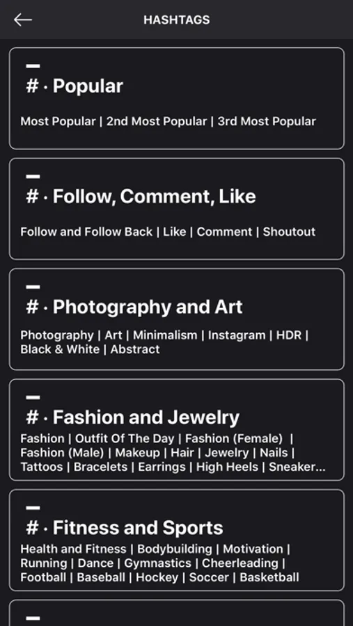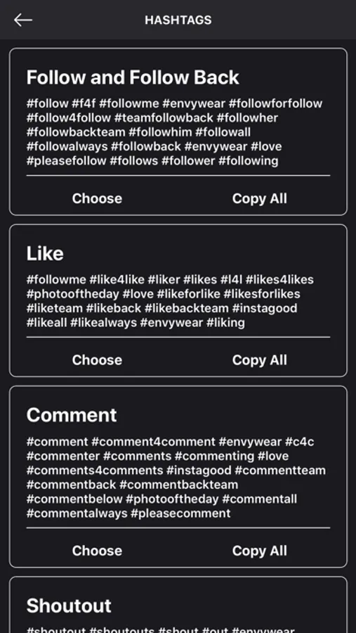 With a unique algorithm for calculating the hotness of all tags and a careful research, we provide categories of most popular and useful hashtags for you to choose. All you need to do is COPY and Paste when you are going to make a new post.