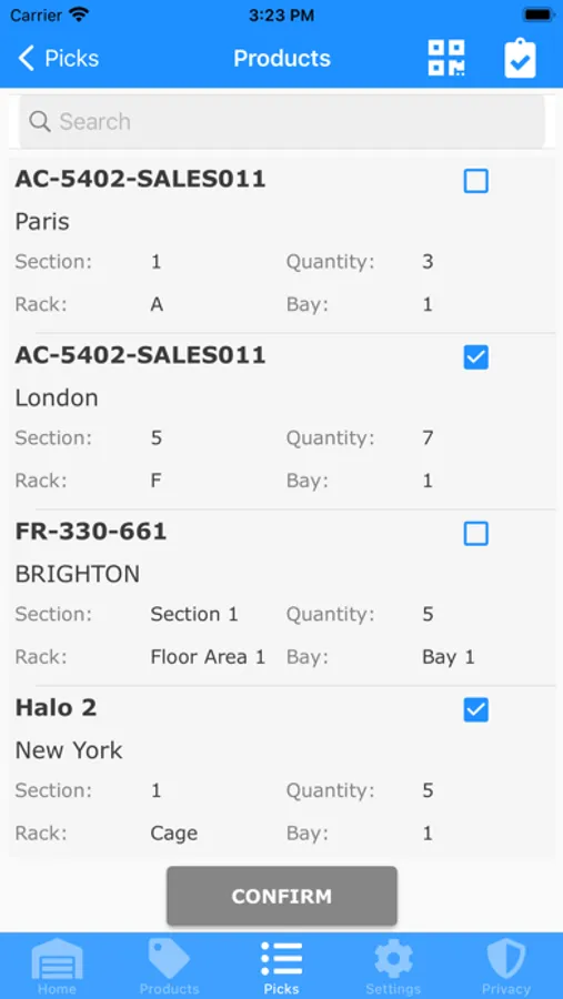 AIMS Warehouse allows a picker to receive pick lists with warehouse locations and to then scan the SKUs for accurate picking.