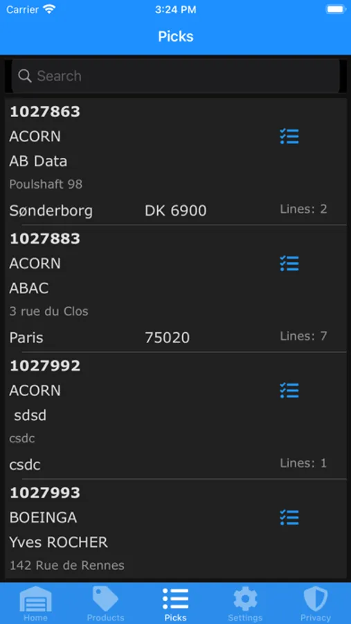 This is a commercial app that links to the AIMS Express back office software for managing pick lists and goods arrival functions within a 3PL warehouse environment.