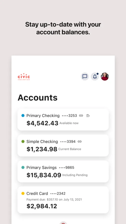 Manage your accounts anywhere at anytime with the app from Civic Federal Credit Union.