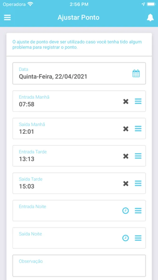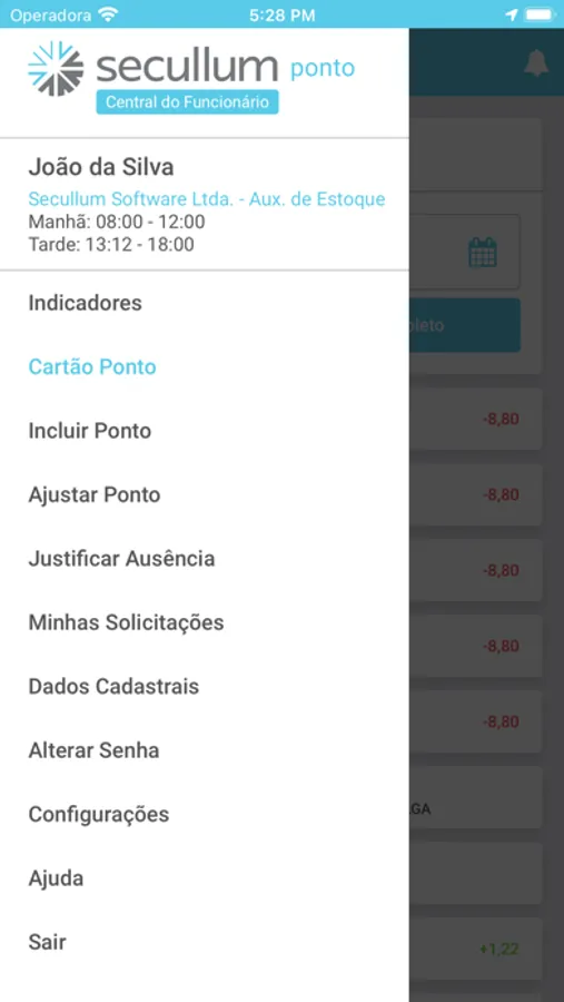 • Visualização do cartão ponto, com detalhes sobre as extras e faltas. Solicitação de ajustes e justificativas;