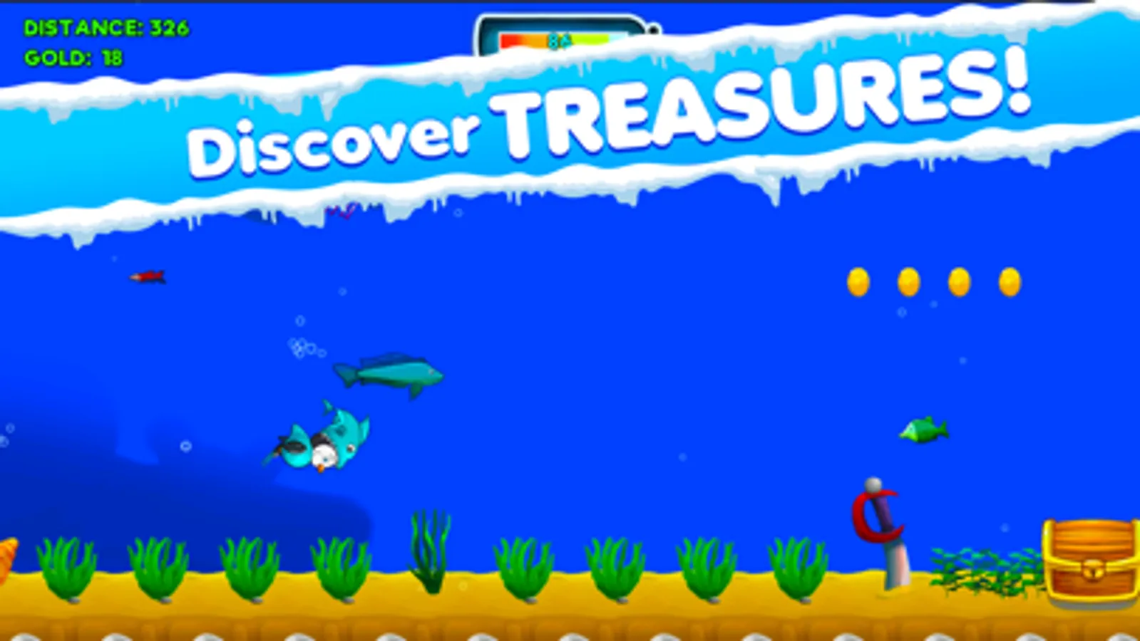 Polar Run features three different environments, each one of them with its fair share of challenges. The first one is on the ice where you need to jump and slide. Sometimes you’ll find yourself in a cave full of surprises, where you will encounter terrifying creatures. Lastly you have an underwater world full of colorful fish, orcas, jellyfish, seals and many more. Do keep in mind that the penguin can’t stay underwater all the time, so you do need to get back to the surface from time to time if you want to stay alive.