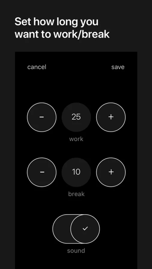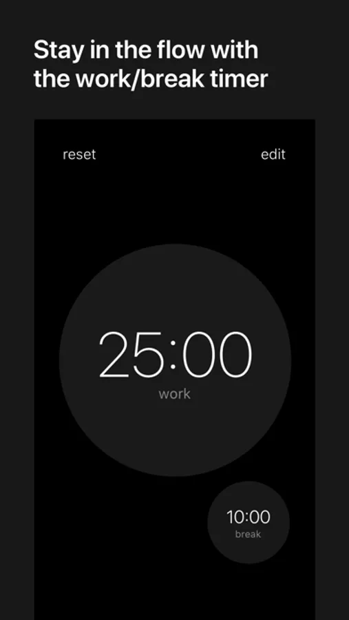 Stay in the flow with a timer that automatically switches between work/break.