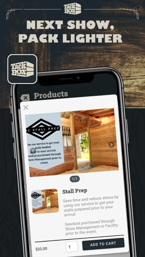 TackBox makes it a cinch to order services and supplies at the horse show, with convenient delivery to your stall as soon as possible. TackBox is designed to enhance your equestrian experience at horse shows. Say goodbye to the hassle of sourcing, buying, and transporting supplies at horse shows - with TackBox, you can order everything you need right from your device, delivered directly to your stall as soon as possible.